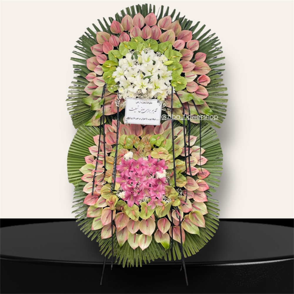 تاج گل دو طبق آنتریوم: انتخابی شیک و محترمانه برای مراسم سوگواری