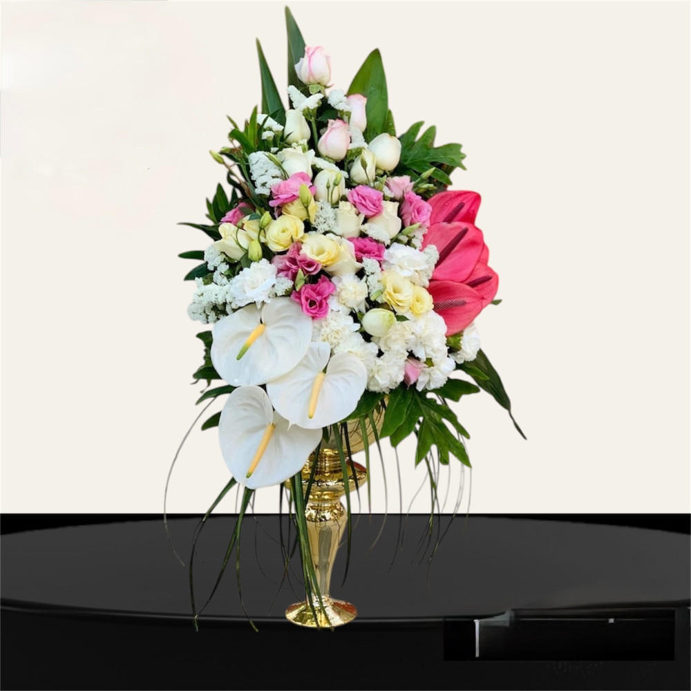 این جام گل با ترکیب رز، لیسین، میخک و انتریوم، یک انتخاب شیک و خاص برای مناسبت‌های ویژه شماست. رز نماد عشق و علاقه است، لیسین و میخک نمایانگر زیبایی و ظرافت هستند و انتریوم با رنگ‌های درخشان خود حس قدرت و انرژی مثبت را به فضا می‌آورد. این ترکیب، زیبایی و شادی را به هر محیطی اضافه می‌کند.