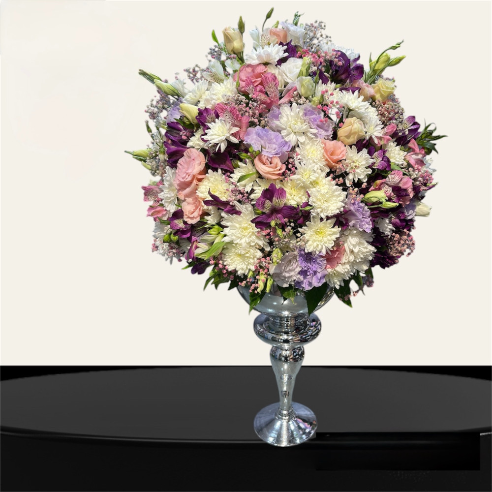 با طراحی منحصر به‌فرد و گل‌های تازه، این جام گل می‌تواند در هر مناسبت خاص به زیبایی و شکوه مراسم شما بیافزاید.