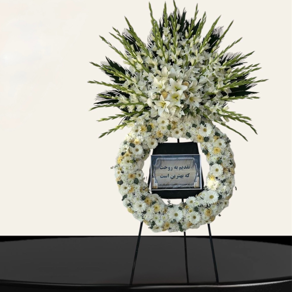 • تاج گل با طراحی خاص یا ترکیب گل‌های لوکس: انتخابی خاص برای ابراز نهایت احترام، مخصوصاً اگر شخص درگذشته از جایگاه اجتماعی یا شخصیتی بالایی برخوردار بوده است.