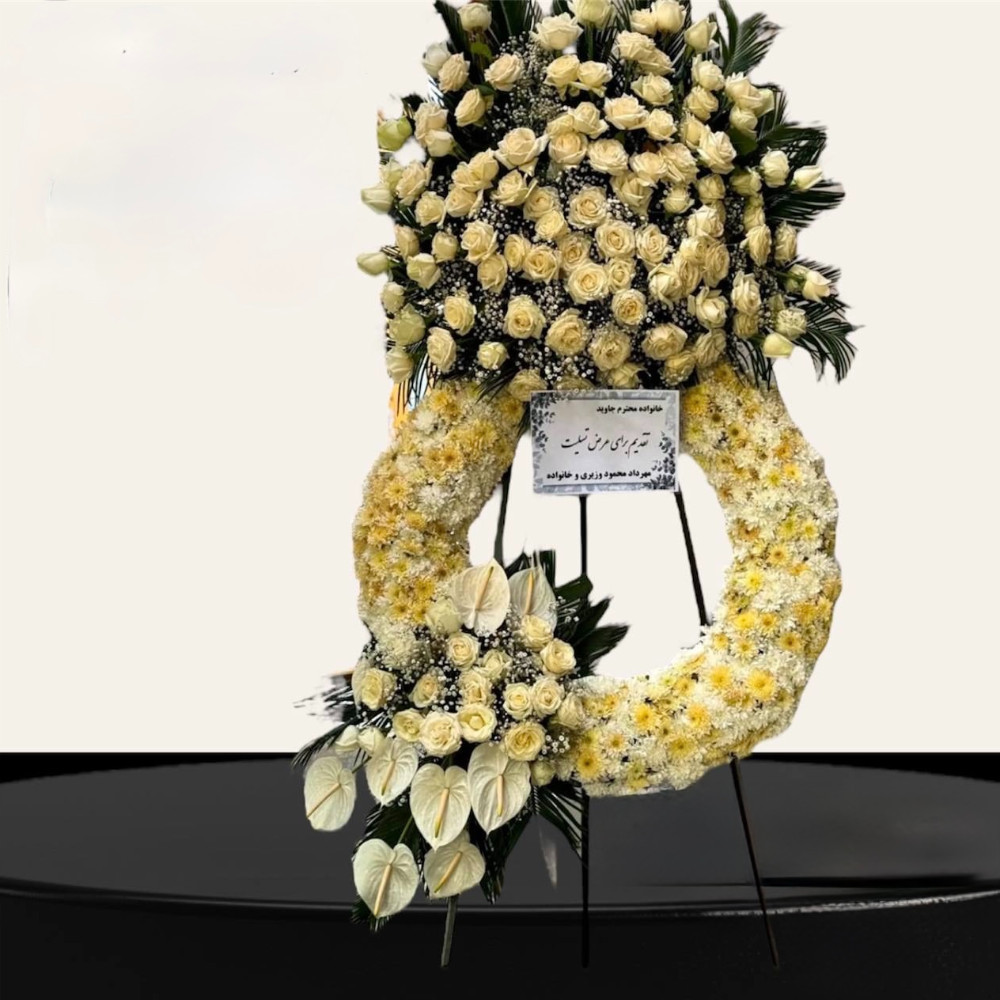 • تاج گل با طراحی خاص یا ترکیب گل‌های لوکس: انتخابی خاص برای ابراز نهایت احترام، مخصوصاً اگر شخص درگذشته از جایگاه اجتماعی یا شخصیتی بالایی برخوردار بوده است.